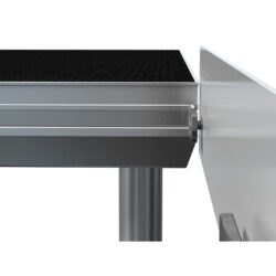 Aluminium skirting profile fixing strip with kick-toe boards to secure rolling materials from falling of the stage. With the ability to attach stage skirts to the stage decks. Prefinished with hook-and-loop fastener and connection points.